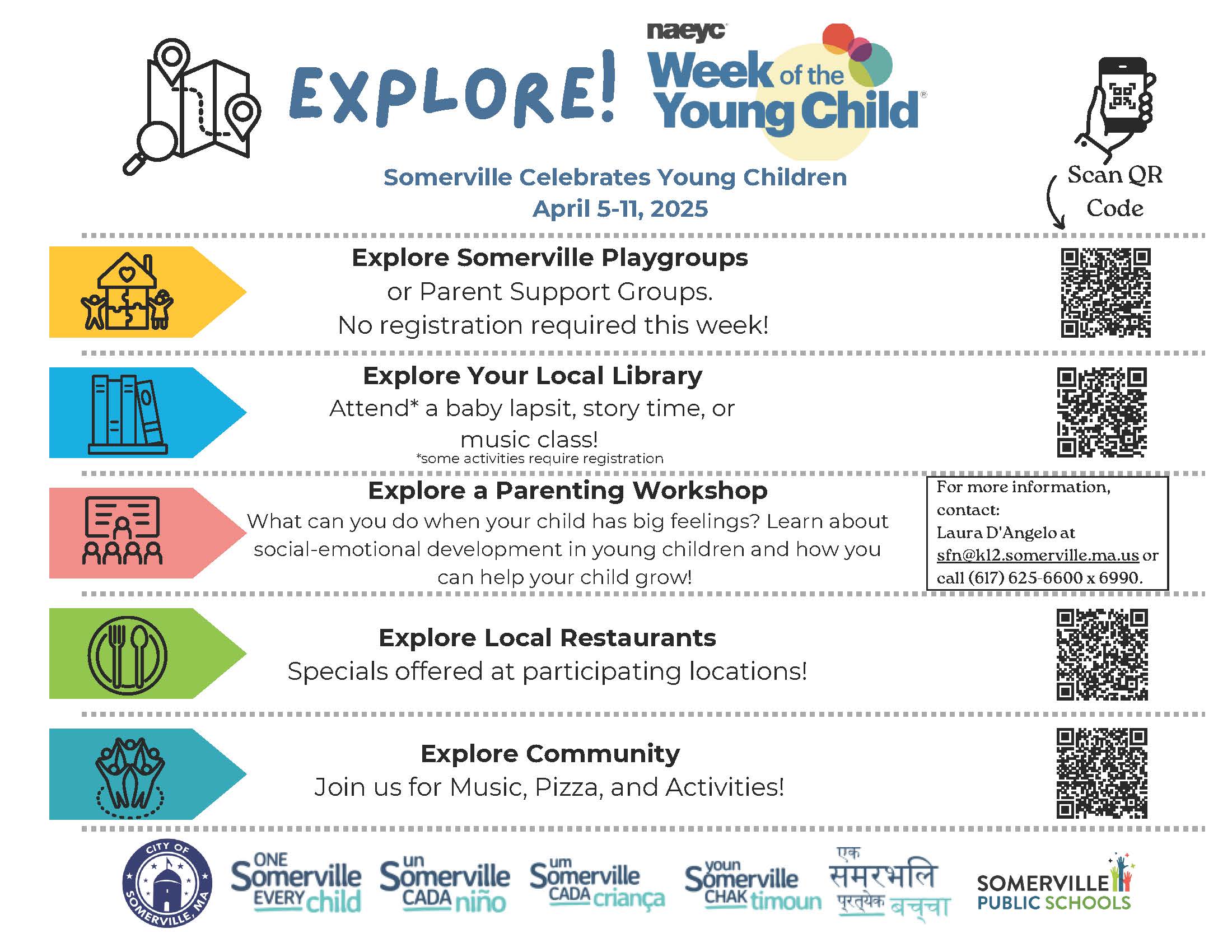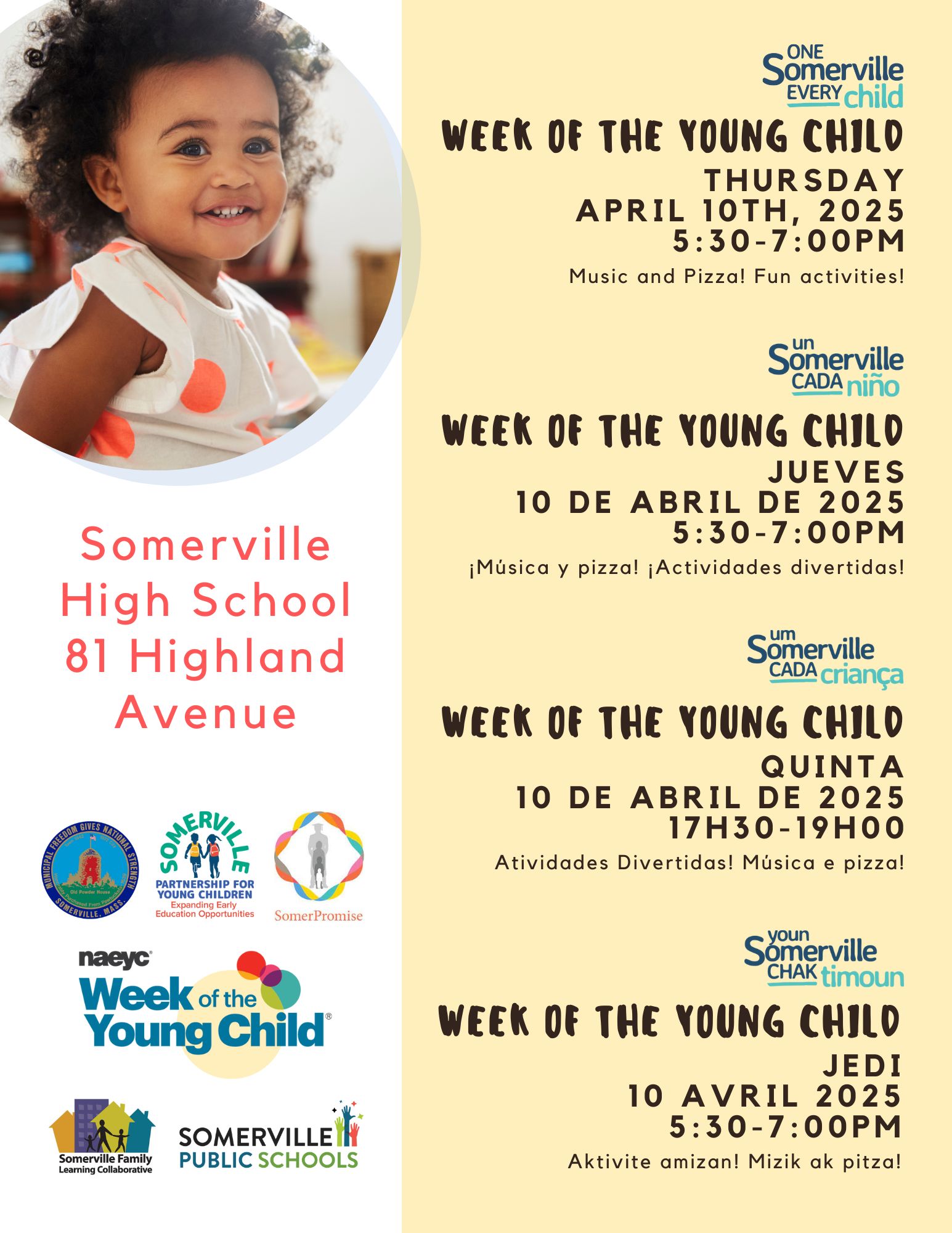 The City of Somerville, the Somerville Public Schools, and Somerville’s early childhood community is hosting a public Week of the Young Child celebratory event under our banner of One Somerville, Every Child.