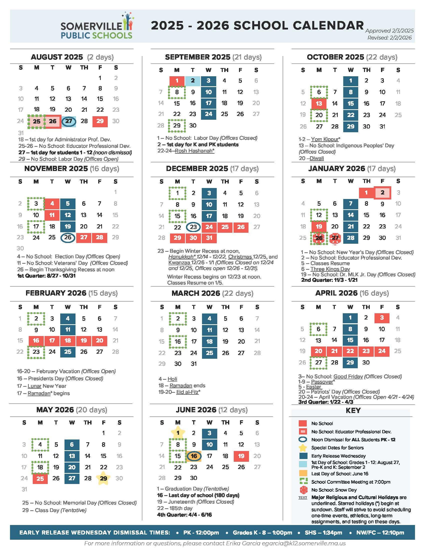 2025–2026 School Year Calendar 2025–2026 School Year Calendar: Revised February 2, 2026. English, Spanish, Portuguese, Haitian Creole.