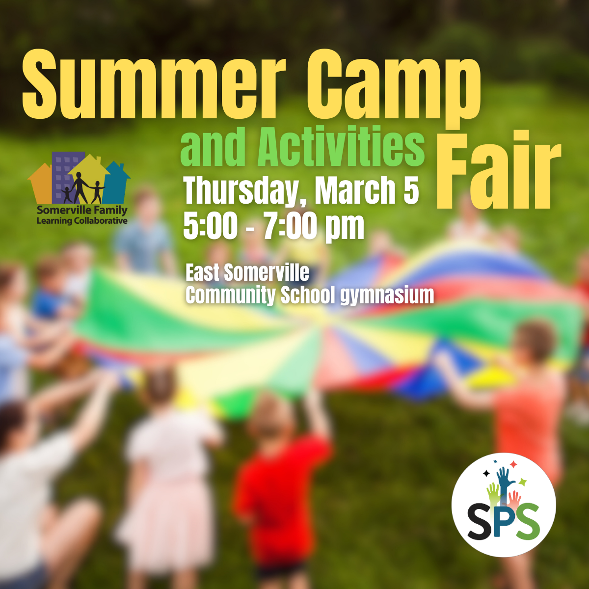 The 2026 Summer Activities Fair will take place on Thursday, March 5, from 5:00 to 7:00pm at the East Somerville Community School gymnasium, 50 Cross Street. Representatives from various regional camps and organizations will be in attendance. Families will have an opportunity to learn about the many summer options available to their children and to get detailed information from program representatives about summer camps, recreational activities, and learning opportunities for children of all ages. All families are welcome to attend and there will be free pizza. There will also be Interpreters available.